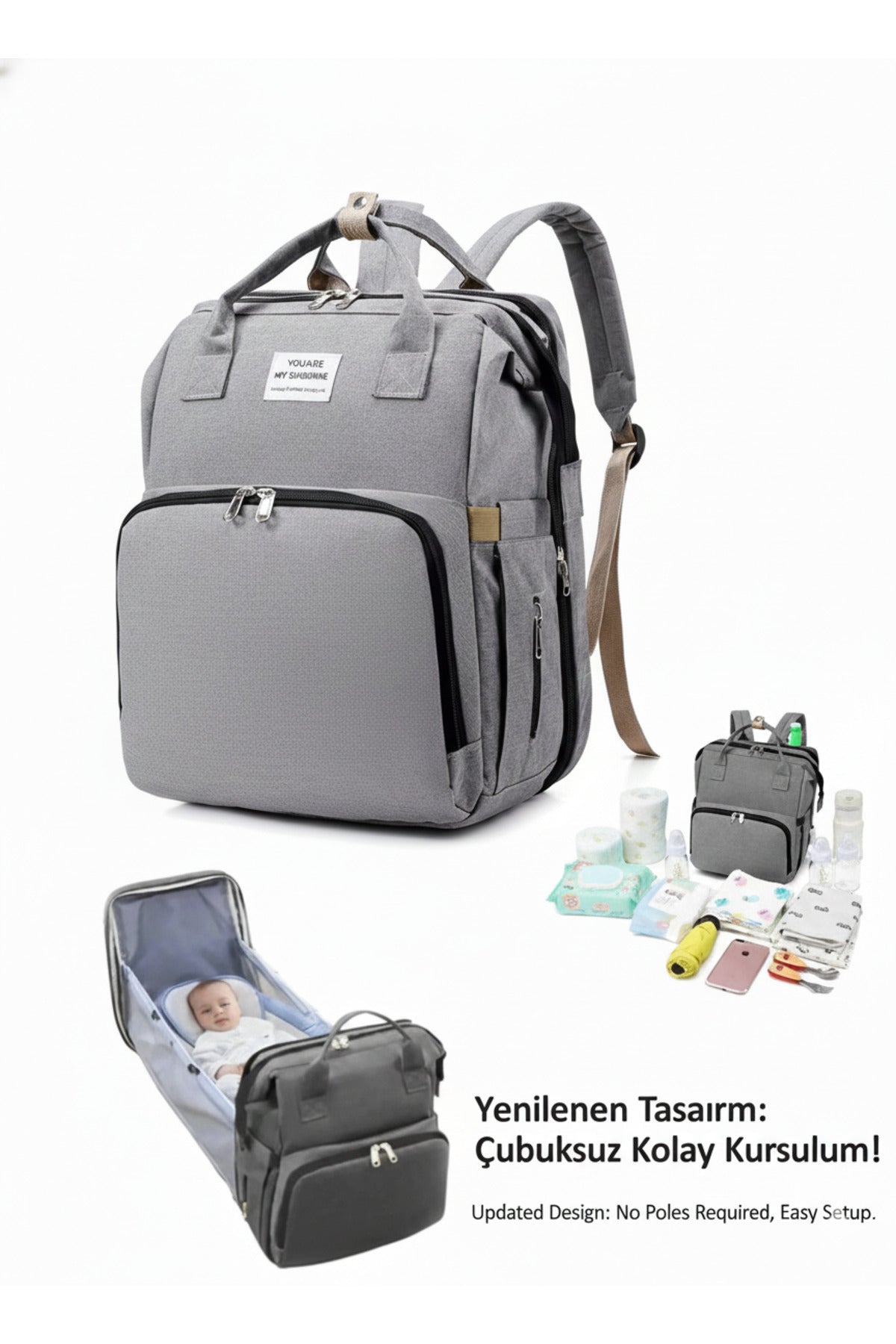 Bu çok işlevli bakım çantası, bebek bakımı için ihtiyaç duyduğunuz her şeyi taşımanız için tasarlanmıştır.